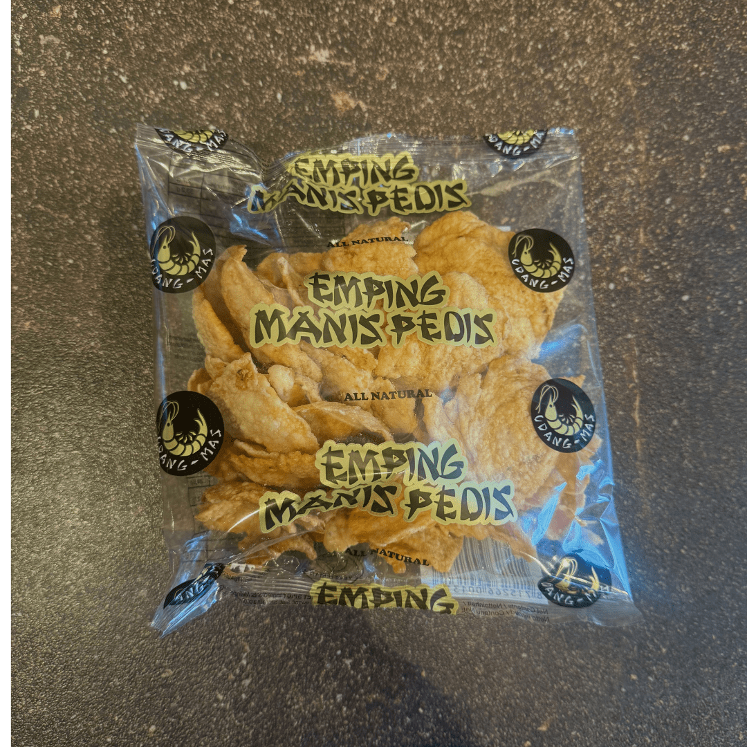 Onze Emping Manis Pedis heeft een speciale zoet-pittige smaaktoets die je bij gewone emping niet vindt. We bereiden het volgens het traditionele recept van onze tantes, met die perfecte balans tussen manis (zoet) en pedis (pittig).