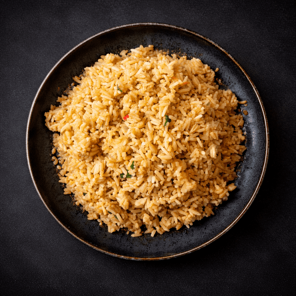 Gebakken rijst met verse groente en roerei. Op smaak gebracht met knoflook, ketjap en een vleugje sambal. Bereid met liefde en zorg door onze tantes. Nasi Goreng is een goedgevulde maaltijd en past bij al onze bijgerechten.
